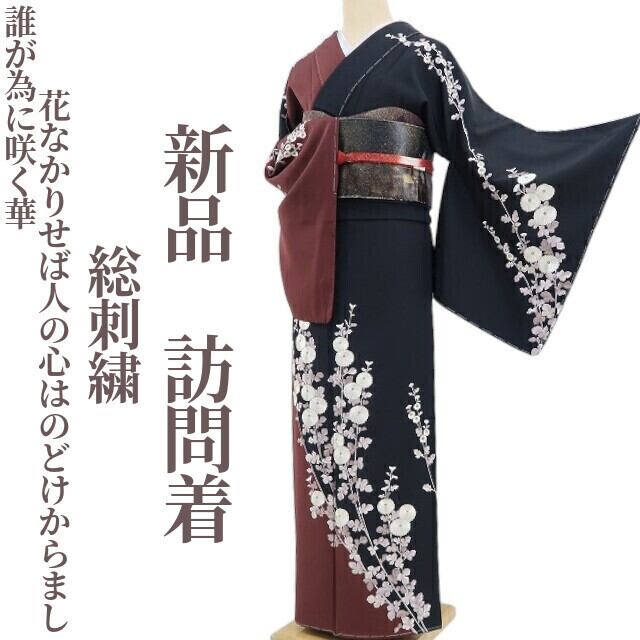 新品 総刺繍 着物“誰が為に咲く華…花なかりせば人の心はのどけからまし”正絹 仕付け糸付 訪問着 5063