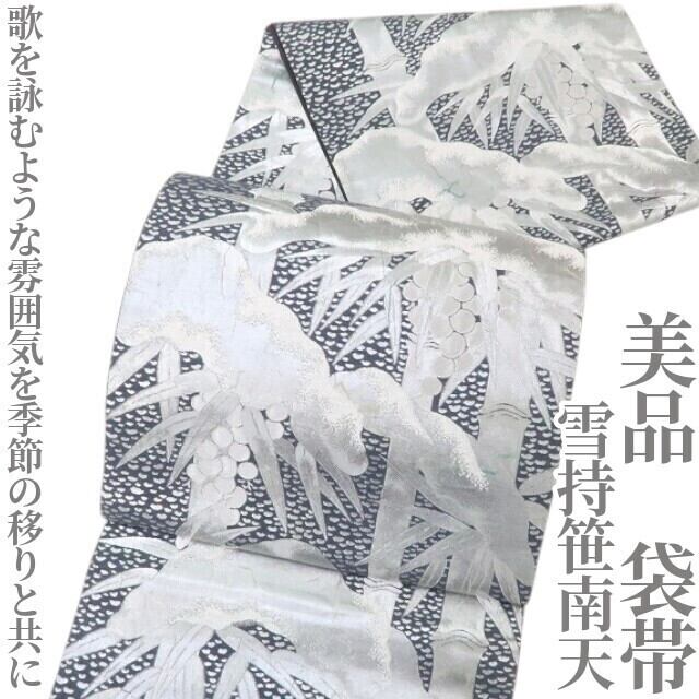 美品 雪持笹南天 着物 正絹“歌を詠むような雰囲気を季節の移りと共に”袋帯 5102