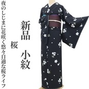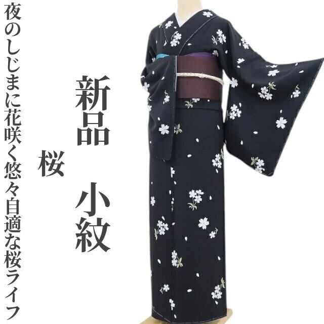 新品 桜 着物 正絹 仕付け糸付“夜のしじまに花咲く悠々自適な桜ライフ”小紋 5149