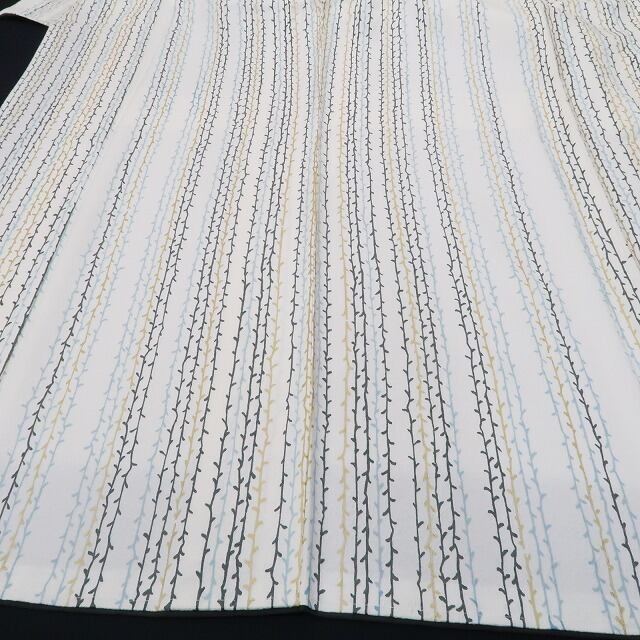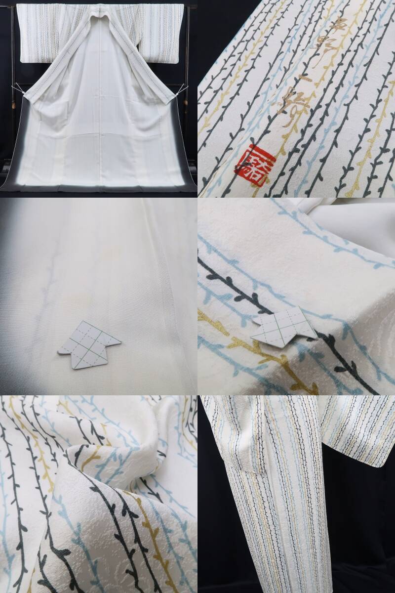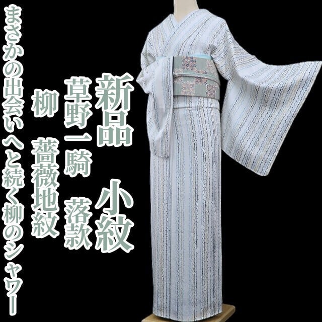 新品 草野一騎 落款 柳 薔薇地紋 着物 正絹 仕付け糸付“まさかの出会いへと続く柳のシャワー”小紋 5165