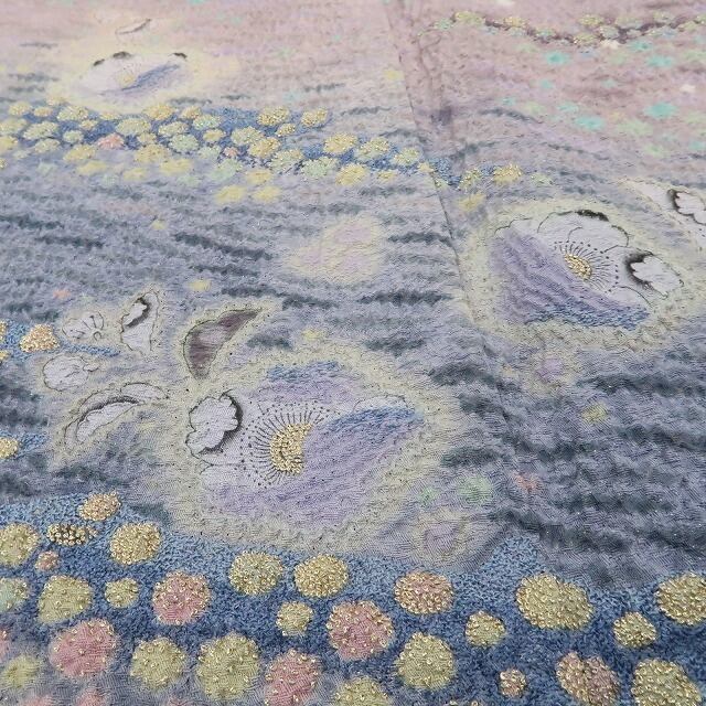 新潟県十日町の和服メーカー“滝泰謹製”のひと品、相良刺繍が入ったおぼろ染/銀通しの訪問着…トールサイズのお品でございます。