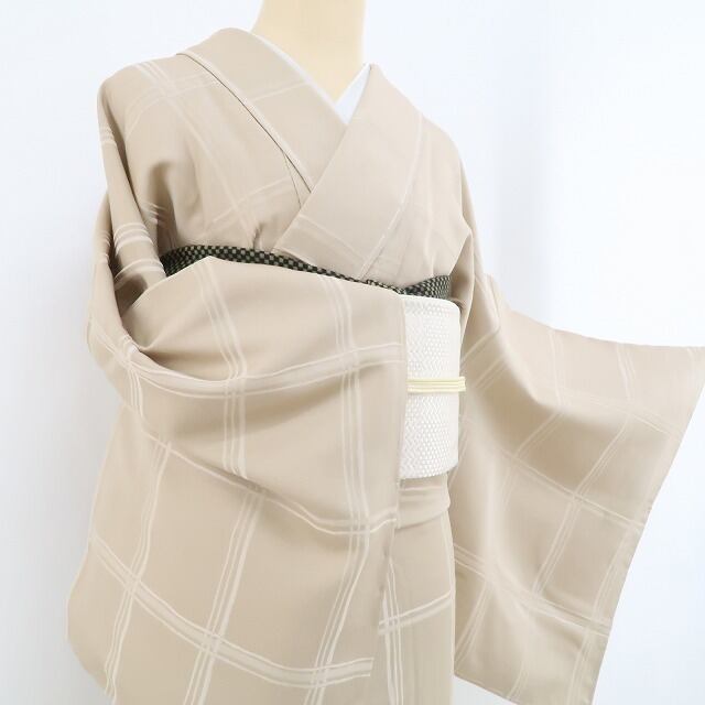 新品 チェック柄 着物 正絹 仕付け糸付“さり気なく技を魅せる永遠の定番”小紋 5250