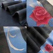 こちらの帯は、ディープトーンの彩色で創作帯の奥行を意識した薔薇の花柄込めています。お洒落を先取る通好みの一本、斬新な意匠に思わず締めたくなる貴女のお気に入りとなること間違いなし。