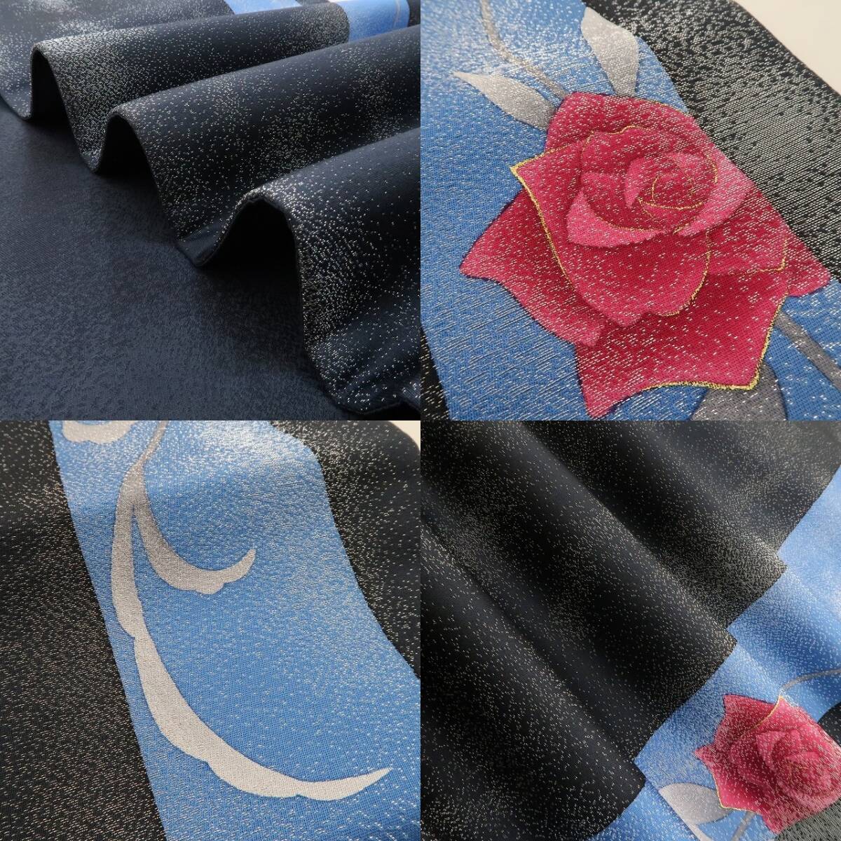 新品 薔薇 銀通し 着物“振り向いてミステリアス!いま証される薔薇の真実”正絹 袋帯 5288