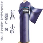 新品 縦暈し 桜 着物“地紋を刻んで艶を挿しお洒落小紋に桜舞う”正絹 仕付け糸付 小紋 5301