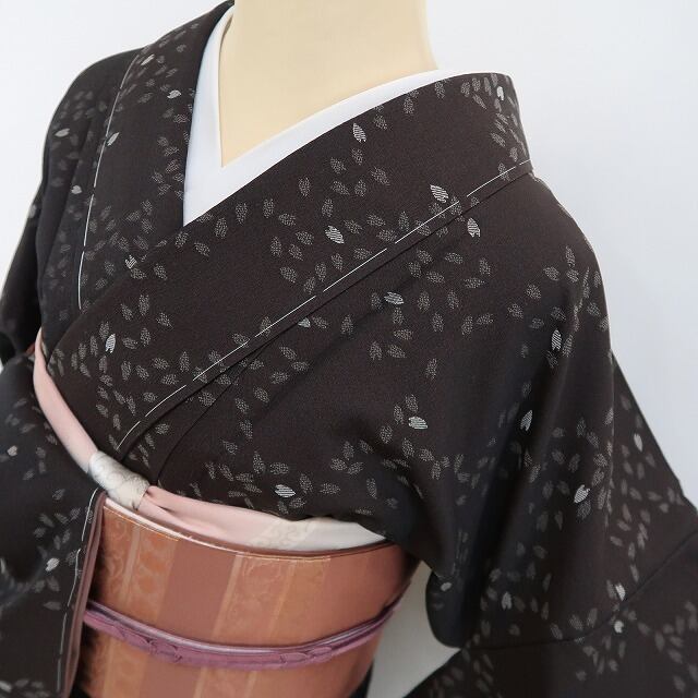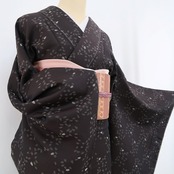 遠目には幻想の中、浮かび上がる市松、その幻想の正体は、温か味のある精巧な姿にさり気なくアクセントをつけて巧みに奥行きを生みながら一面委広がるシボのある表情と共に花びらだけで情緒を誘い雰囲気をつくる桜。ただ情緒を誘うだけでなく幻想的に華やぎながら自然と市松を浮かべる桜の遊び心に拍手を送りたくなる、やまと誂製 秦流舎“桜”正絹仕付け糸付西陣お召でございます。