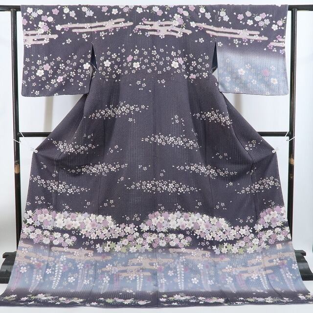 ふとした時に見え隠れする八掛には、無垢な色付きで花びらを遊ばせる桜が舞い降り、体に沿うように馴染み良い“手縫い仕立て”の味が自然と美しい着姿を演出、肌当たりのやわらかい“正絹”素材で着心地の良さもお約束。