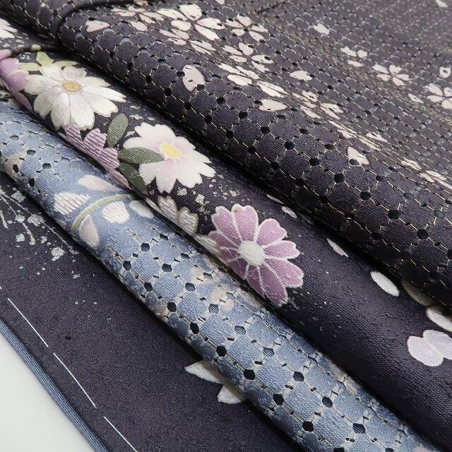 いつもよりお洒落をした桜、桔梗やコスモス、藤、紅葉や銀杏、七宝、松葉に紙吹雪が絞り柄のエ霞に弾み、独特の透かしと共に格子を架ける減紫色の空に舞い上がり、時には霧を纏い、時には自ら霞や雲となって贅沢な贅沢なその美しさで此処だけに広がる晴れ空となる。
