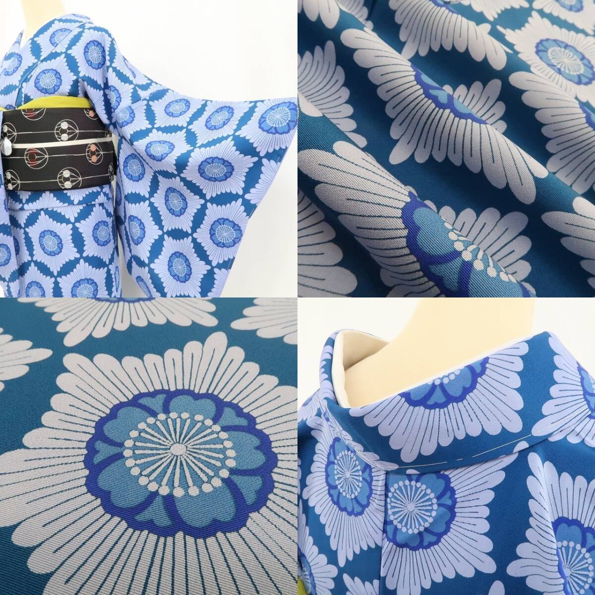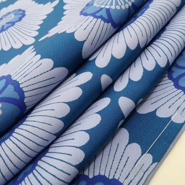 新品 着物 正絹 仕付け糸付“花びらを遊ばせる菊から桜...変化上手な七宝”小紋 5308