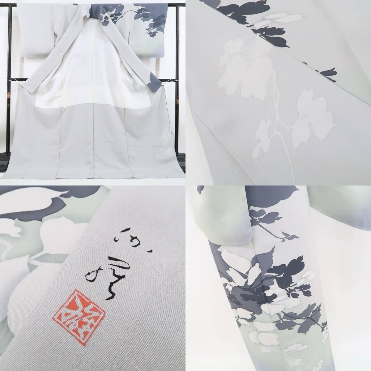 新品 丹下雄介 落款 着物 正絹 仕付け糸付“想像させるシルエットで影を抜け出し花曇りへ”訪問着 5326