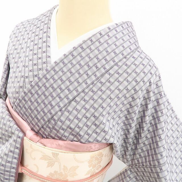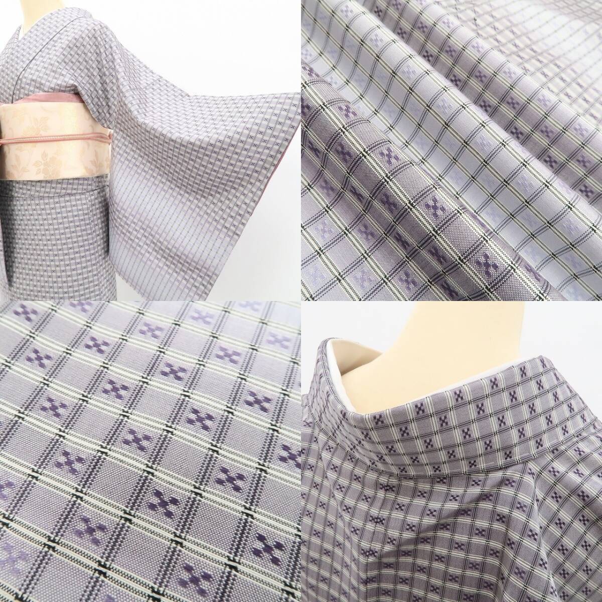 こちらのお着物は、ライトグレイッシュトーンの彩色で意匠の美しさにフォーカスした素朴な花織模様を込めております。浮き織紬の奥行とともに嫌みのないさりげないセンスを表現するのに最適なお召し物です。