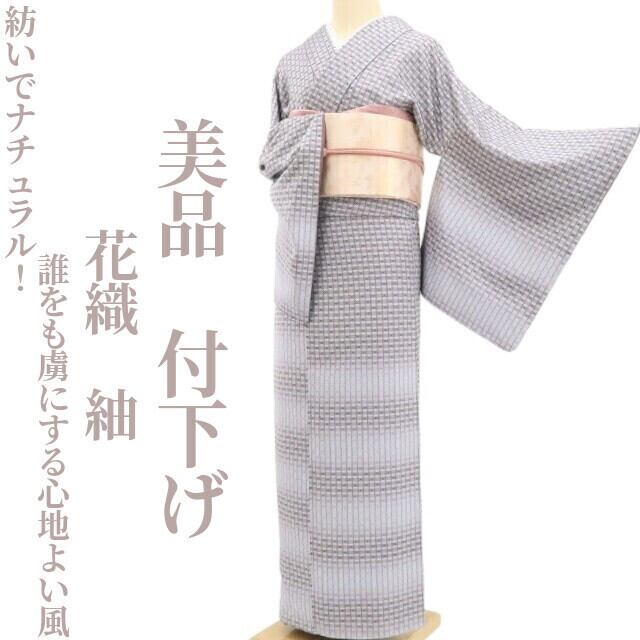 美品 花織 着物 正絹“紡いでナチュラル!誰をも虜にする心地よい風”仕付け糸付 紬 付下げ 5332