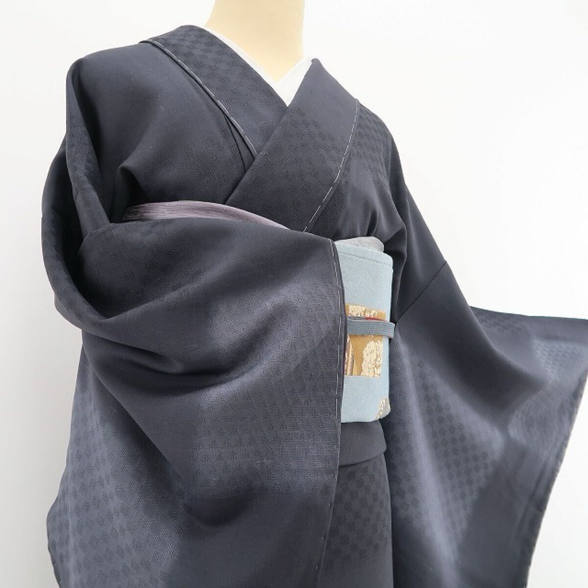 大人びた艶を放つ落ち着いた青褐色の彩色、巧みな構図で浮かび上がる洒落格子の濃淡デザイン、それは精微な市松や鱗の繋ぎ柄が奏でる古の風、シンプルにそしてダイレクトにセンスを感じさせてくれるひと品…ほのかな色香に染まりながら貴女へ上質の高揚感を届けてくれます。