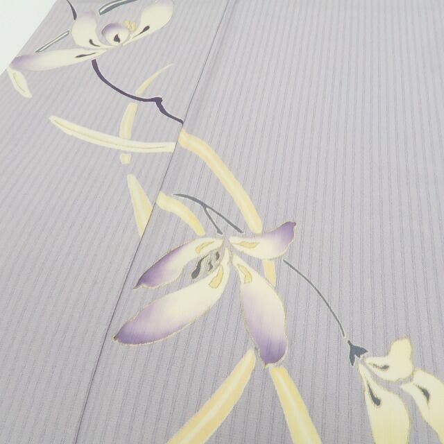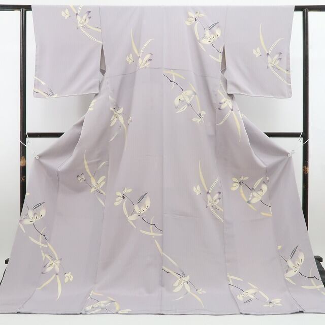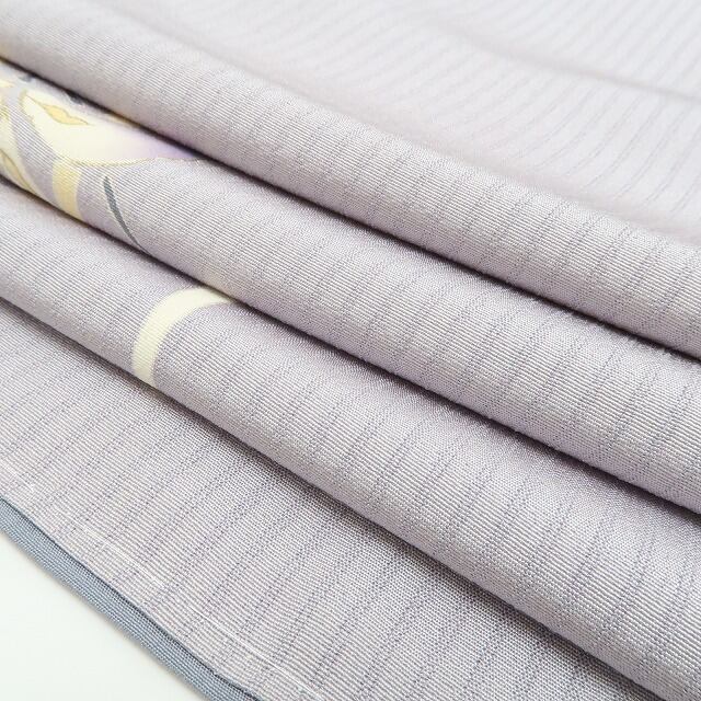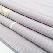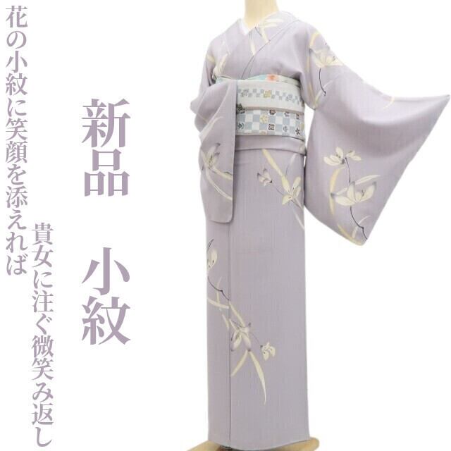 柔らかな藤色の地に散らされた可憐な小花のデザインモチーフ、色柄が創り出す優しい視覚のインパクト、ほのかに色を挿すその表情は小紋に潜む温もりそのもの、“和の日常に華を咲かせて”…普段使いからお出掛けまで貴女のそばで幅広く和の日常をカバーしてくれます。