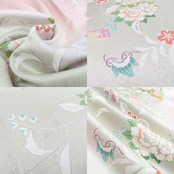 “花が零れて想いは巡る四季折々の花語り”、全体的には落ち着いた趣を感じさせてくれるモダンエレガントなひと品、幅広いコーディネートをお楽しみいただける装い易さも魅力です。