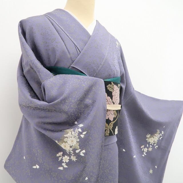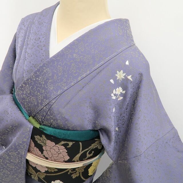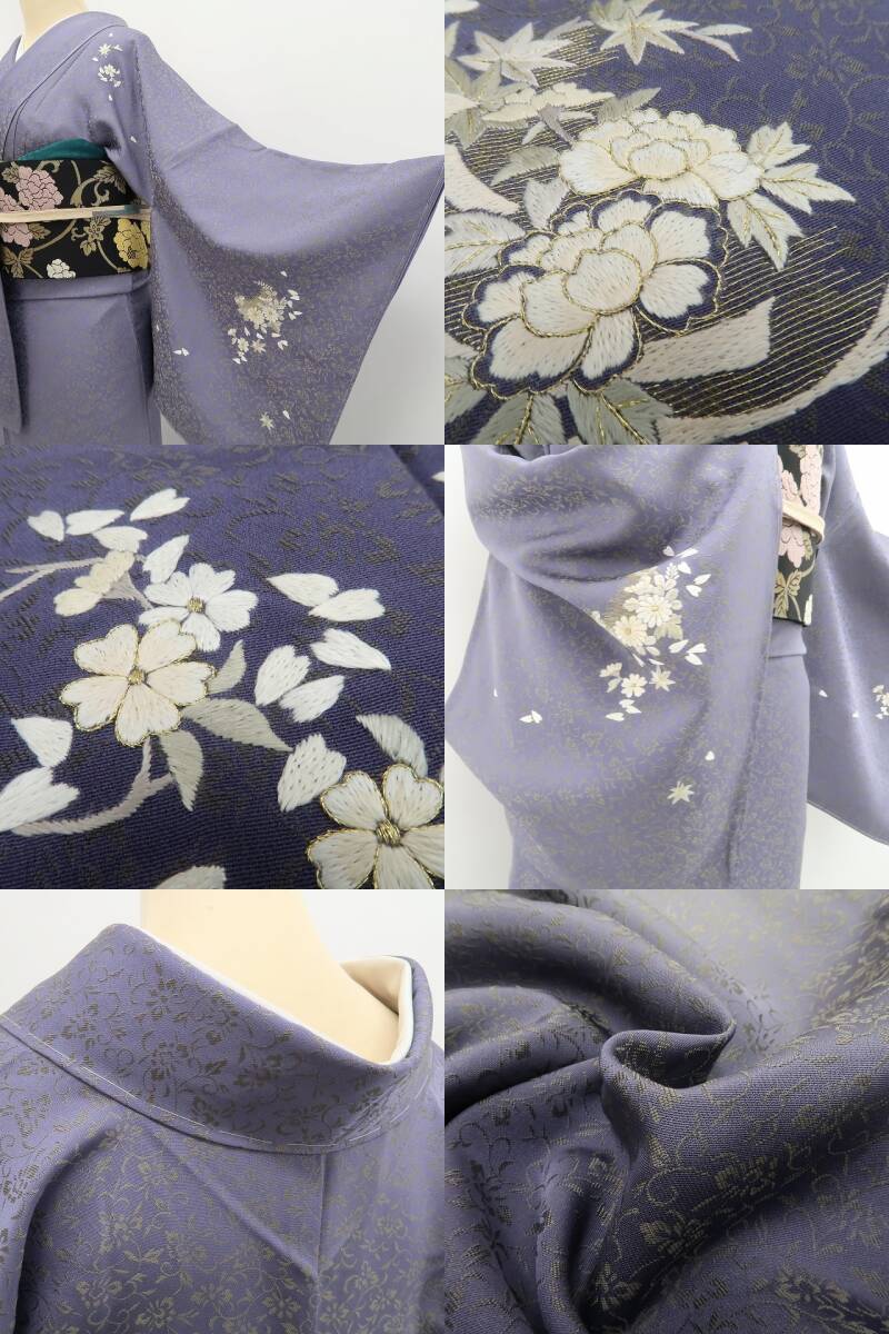 こちらのお着物は、落ち着いた彩色で刺繍の美しさを際立たせるデザイン性の高い艶小柄を込めております。総刺繍なれども決して過飾にならず、センスの良さを表現するのに最適なお召し物です。