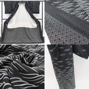 こちらのお着物は、モノトーンの彩色で従来ある波模様のパターンを和モダンにアレンジしています。創作着物の奥行とともに嫌みのないさりげないセンスを表現するのに最適なお召し物です。