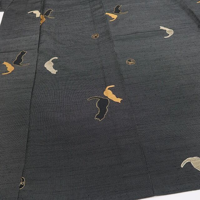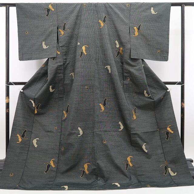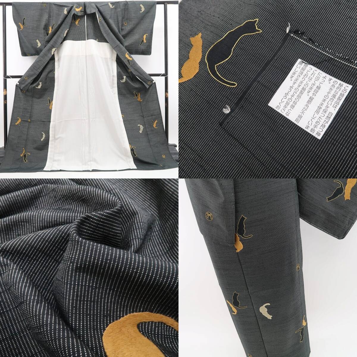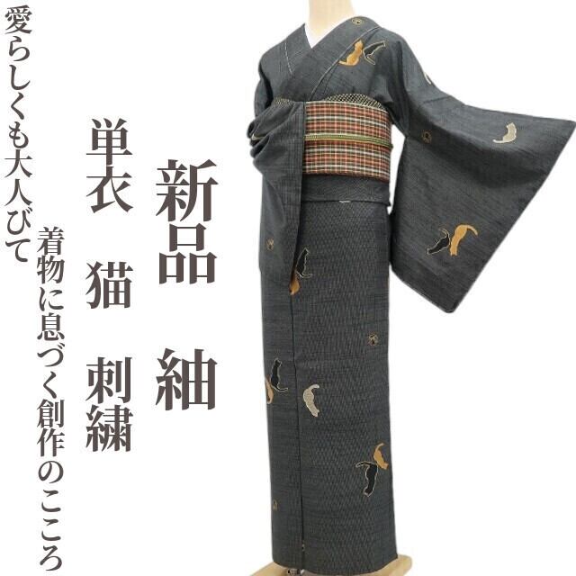 新品 単衣 猫 刺繍 着物“愛らしくも大人びて着物に息づく創作のこころ”正絹 仕付け糸付 紬 5428
