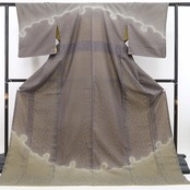 こちらのお着物は、ダルトーンの彩色に従来ある古典柄を新たな視点で和モダンにデザイン化しています。やや強めのインパクトながら程よい主張で、さりげないセンスが印象的に際立つお召し物です。