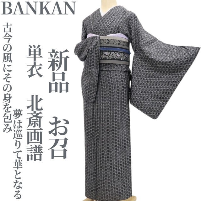 新品 BANKAN 単衣 北斎画譜 着物“古今の風にその身を包み夢は巡りて華となる”正絹 仕付け糸付 お召 5437