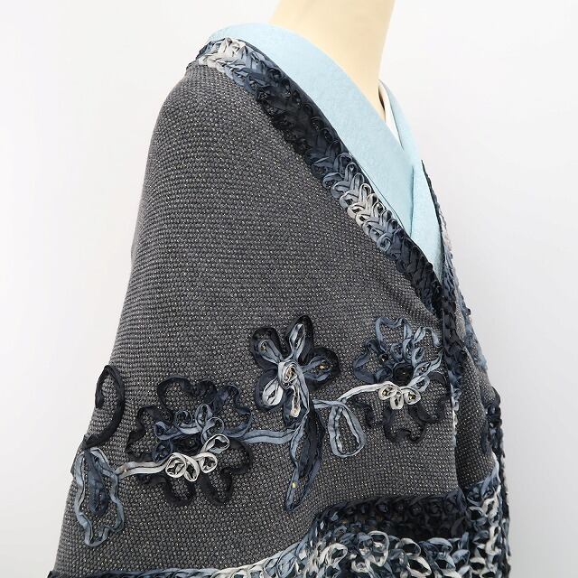 美品 金彩友禅作家 和田光正 コード刺繍 和洋装“いま証される花の真実”着物 ストール 大判ショール 5457