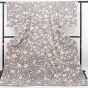 趣ある桔梗鼠色の彩色が誘う心地よい温もり、全面に可憐な表情で描き込まれた桜や小花のデザインモチーフ、そして精微な相良刺繍が照らし出すこの上ない高級感、それは正に“貴女を照らす季節の陽光”、“取って置き”の一枚はこれで決まり!装いの満足度を届けてくれること間違いなし。