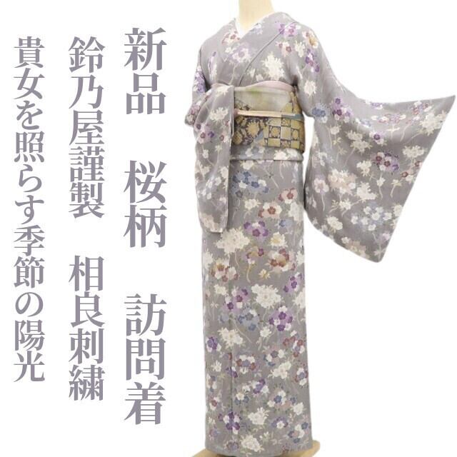 新品 鈴乃屋謹製 相良刺繍 桜 着物“花満開に心を満たすとき…貴女を照らす季節の陽光”正絹 仕付け糸付 訪問着 5460