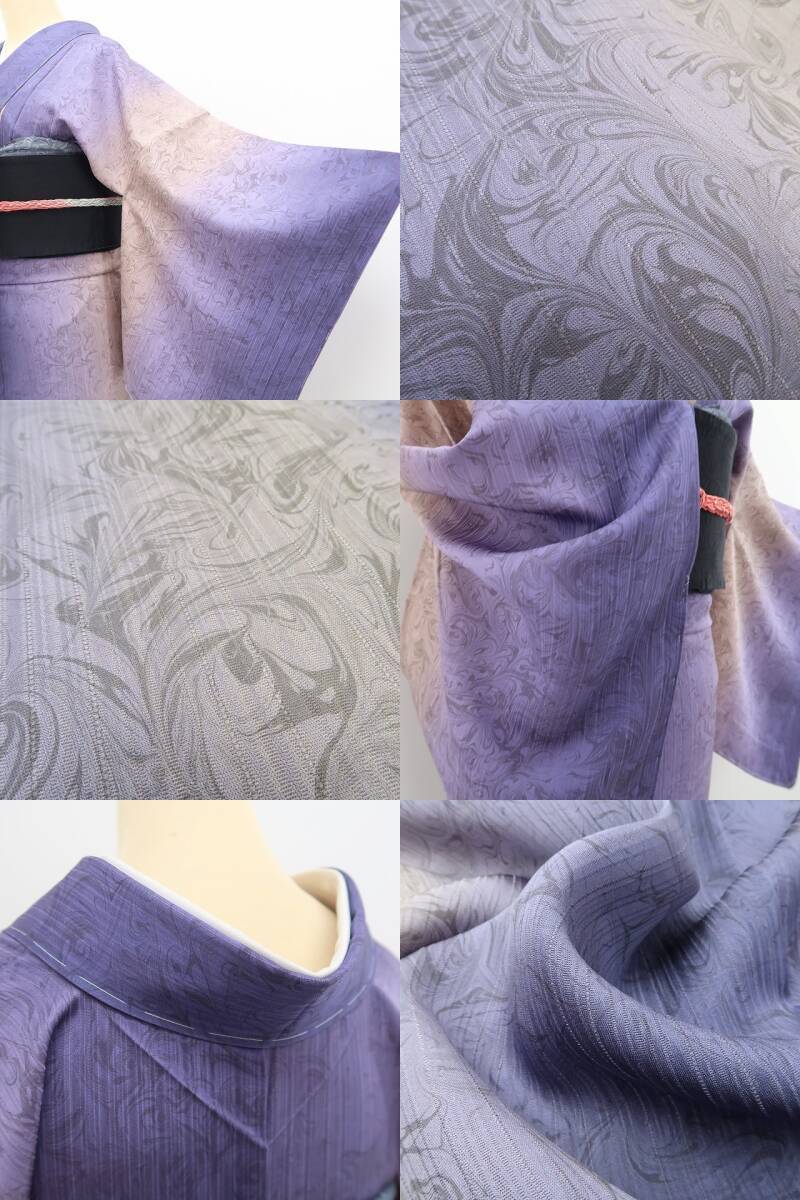 新品 単衣 墨流し 着物 正絹“鳴りやまない和の鼓動…艶めいてミステリアス”仕付け糸付 トールサイズ 小紋 5474