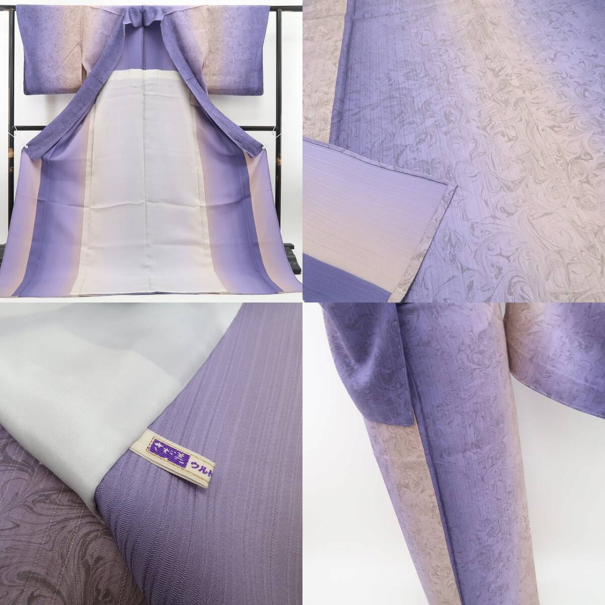 新品未使用・撮影の為だけに着付けた“仕付け糸付/手縫い仕立て”の一枚、お座りになられました時など薄手着物特有のよれを低減し、また下にお召になられましたものの透けを防止する効果を持つ居敷当て付の高級仕立てでございます。