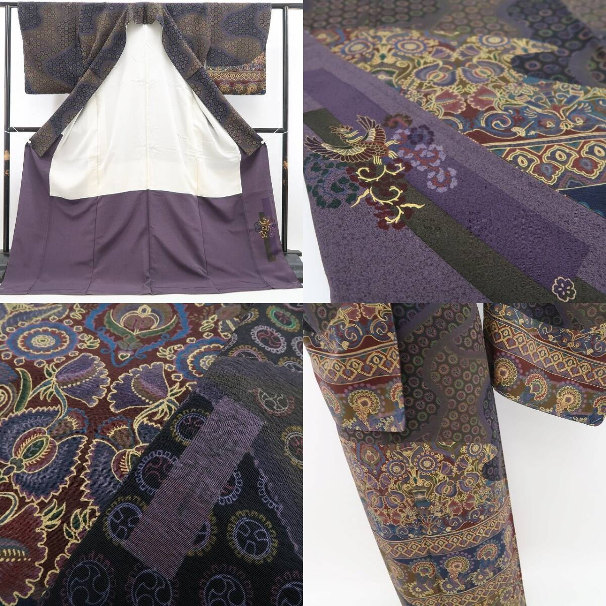 独特の染色技法で斬新な作品を次々と世に送り出す友禅師“前田仁仙”、更紗文様を込めた落款入りの訪問着でございます。