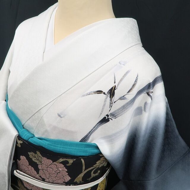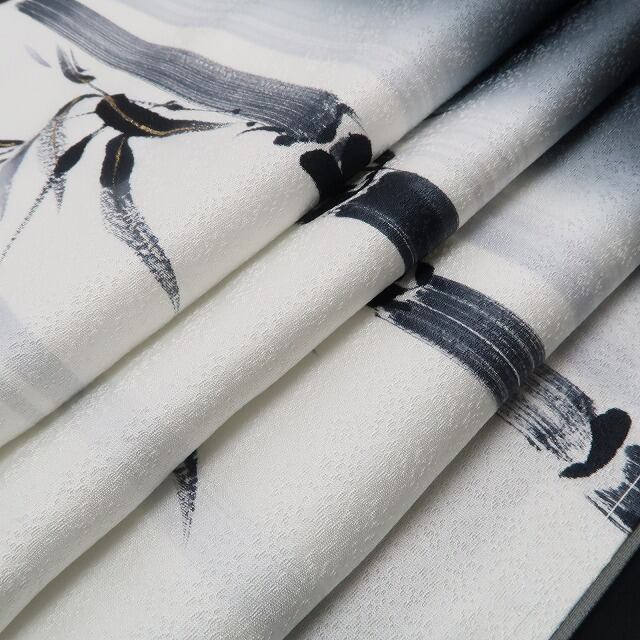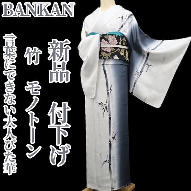 新品 BANKAN 竹 モノトーン“あぁ!美しきかな…言葉にできない大人びた華”着物 正絹 仕付け糸付 付下げ 5504