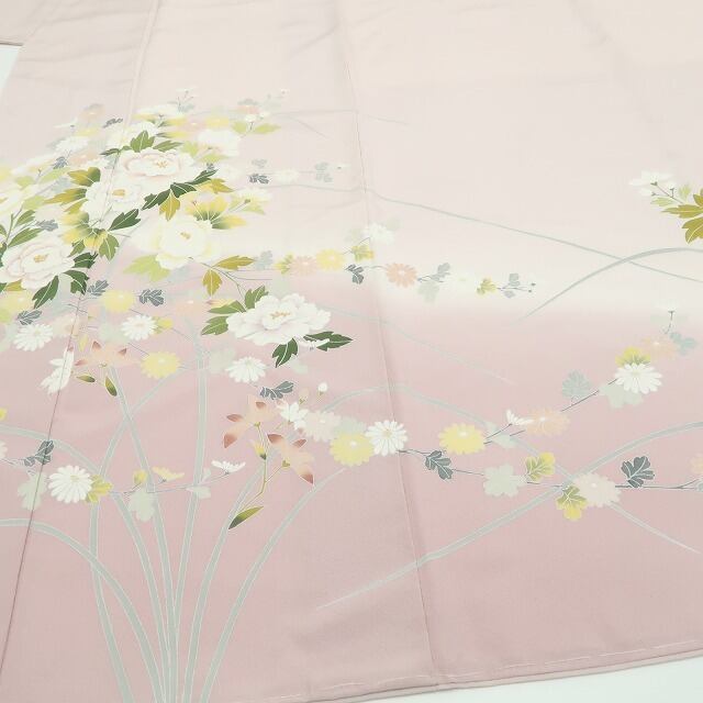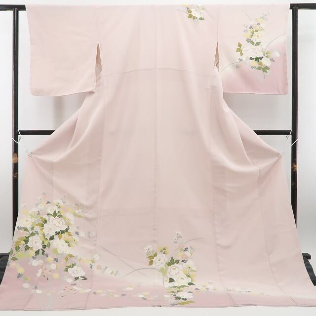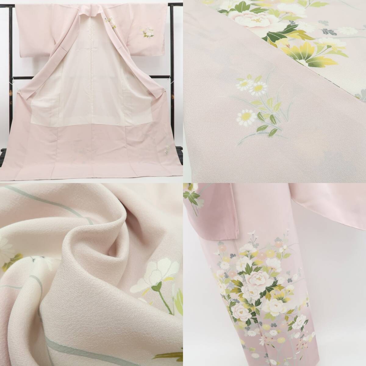 新品 手描き友禅 牡丹 着物 正絹“振り向けばそこに心射止める花の眼差し”仕付け糸付 トールサイズ 訪問着 5532