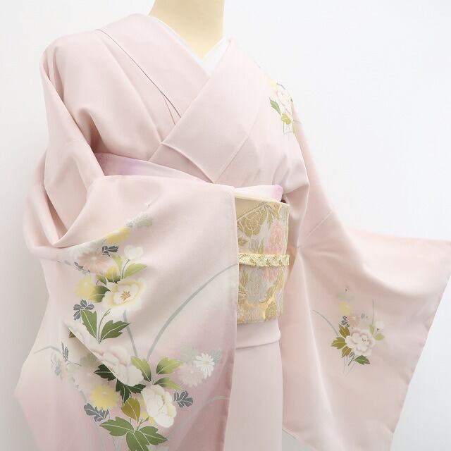 “創作着物で視線を釘付け”、牡丹の花を込めた手描き友禅の訪問着…トールサイズのお品でございます。