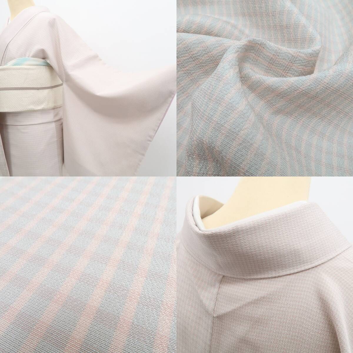 新品 チェック柄 着物“手を伸ばせばそこに貴女を包むシンプル和モダン”正絹 仕付け糸付 お召 5585