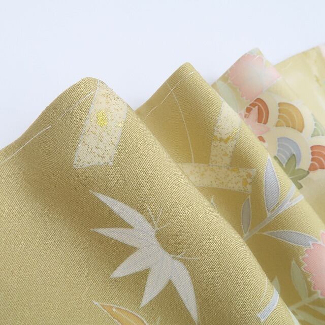 こちらのお着物は、ライトトーンの彩色で染めの美しさにフォーカスした日本古来の吉祥柄を和モダンにデザイン化しております。丁寧な柄付けも魅力のひと品、楚々として飾り過ぎず…お祝いの席などに最適なお召し物です。