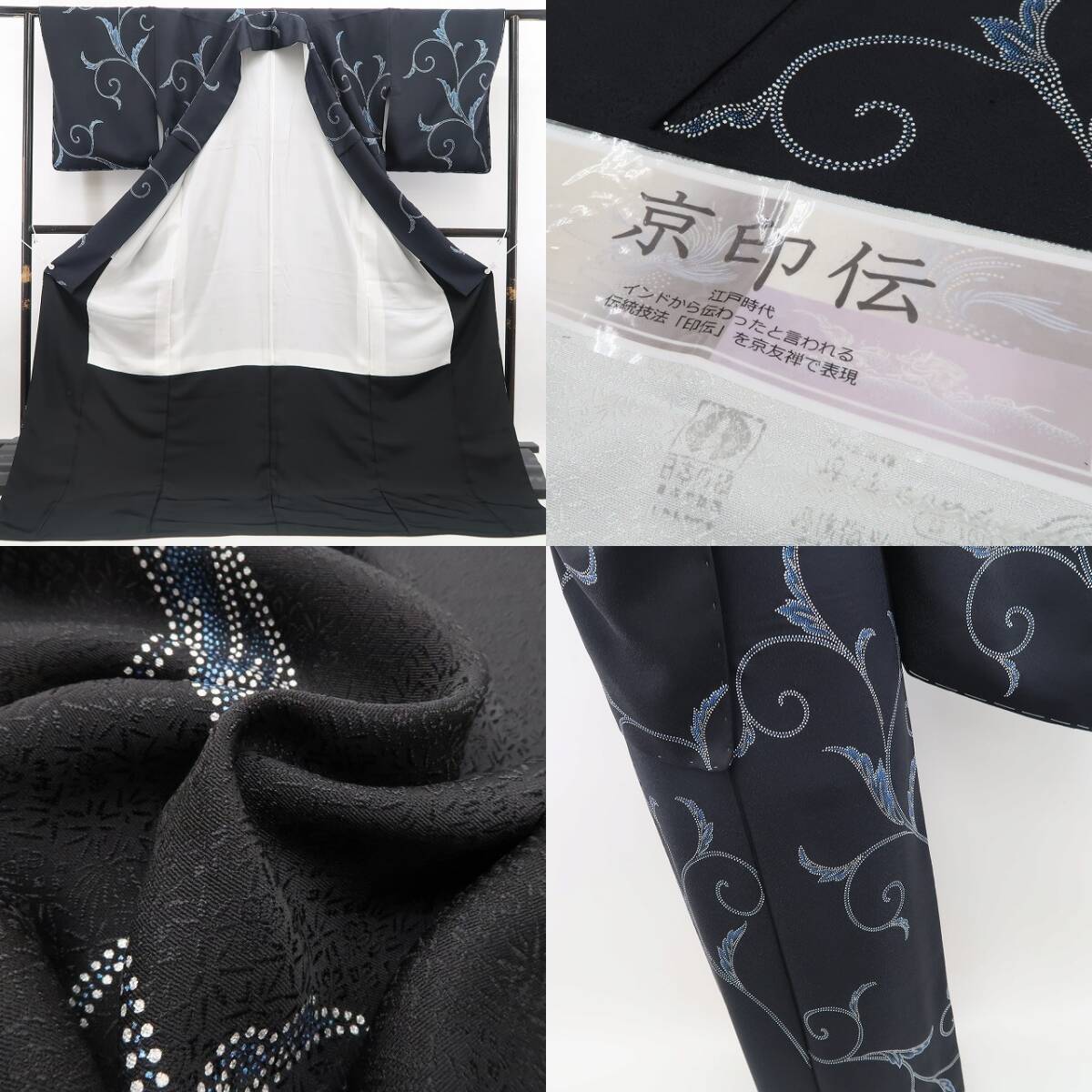 新品 京印伝 お仕立て上がり品 唐草“小紋で叶う自分だけのプレミアム”着物 仕付け糸付 トールサイズ 小紋 5607