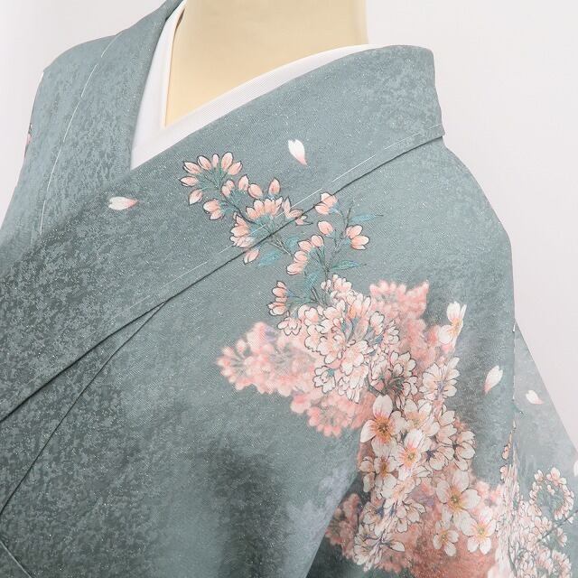 お着物の枠に収まり切れない満開の美しさを咲き誇る、“桜”銀通しお仕立て上がり品正絹仕付け糸付トールサイズ訪問着でございます。