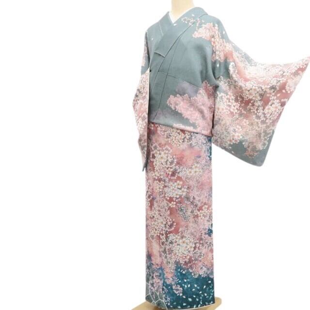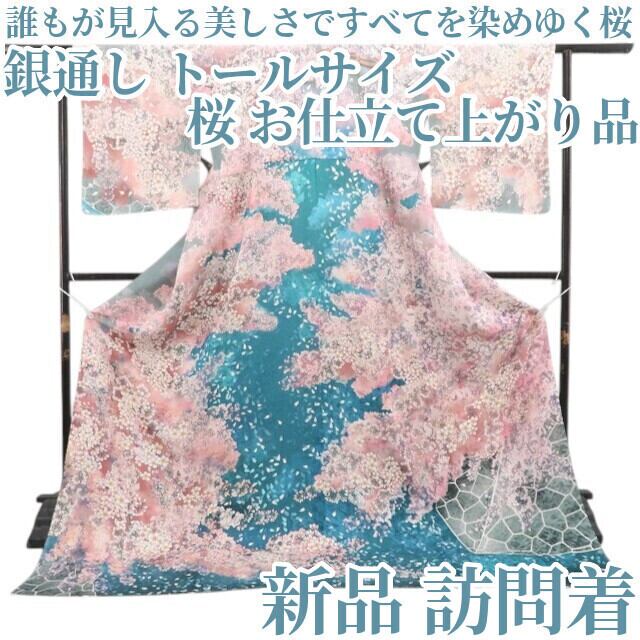 新品 桜 銀通し お仕立て上がり品 着物 正絹 仕付け糸付 トールサイズ“誰もが見入る美しさで全てを染めゆく桜”訪問着 5613