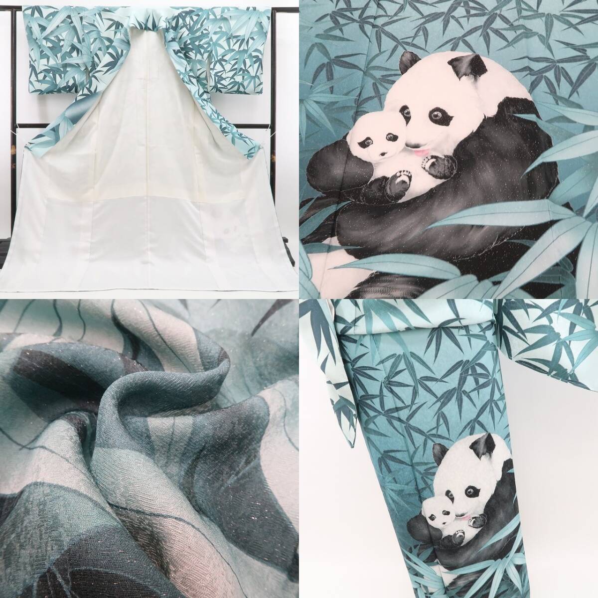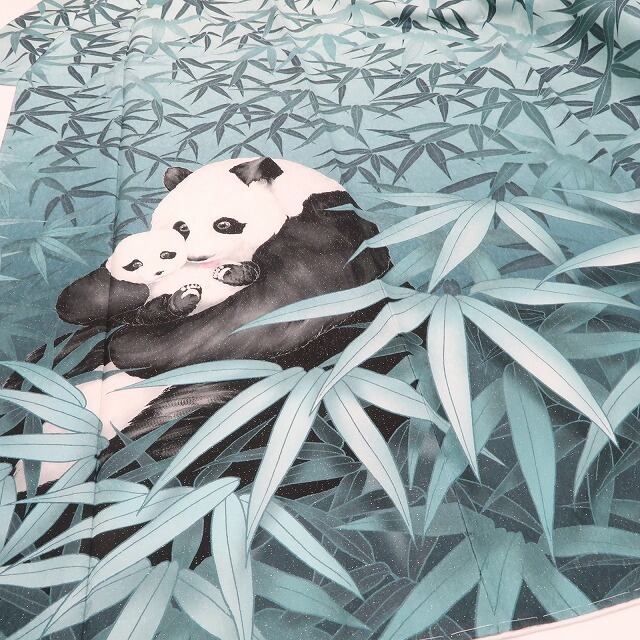 新品 パンダ 竹笹 銀通し 着物 正絹 仕付け糸付 トールサイズ“竹林に溢れる愛しくて愛しくてたまらない心”訪問着 5614