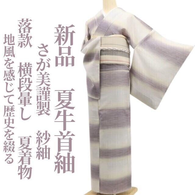 新品 さが美謹製 紗紬 落款 横段暈し 夏着物“地風を感じて歴史を綴る”正絹 仕付け糸付 夏牛首紬 5621