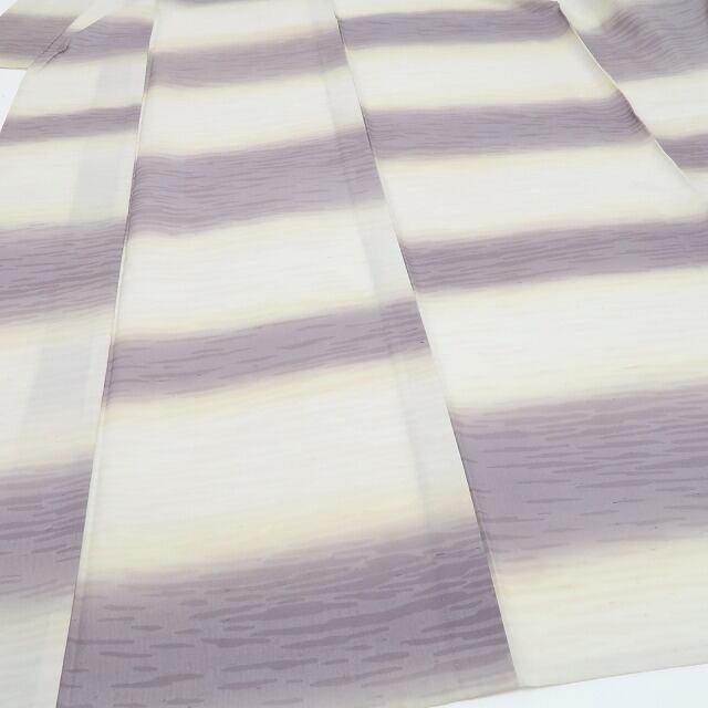 こちらのお着物は、夏紬の素材感にフォーカスしたシンプルな横段暈しを込めています。ぼかしは、優れた色彩感覚と繊細さが必要とされる染色方法のひとつで、優しい色合いの絶妙なグラデーションがなんとも言えない幻想的な仕上がりを創り出します。