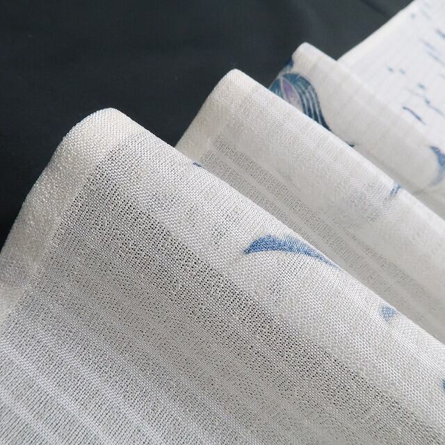 紗は二本の経糸で緯糸一本ずつをからめて織り上げたシンプルなもじり織で絽以上に透け感があり、カジュアルからセミフォーマルまで幅広く着られる夏生地のひとつ、織り柄のある紋紗、紬糸を使った紬紗などがあります。