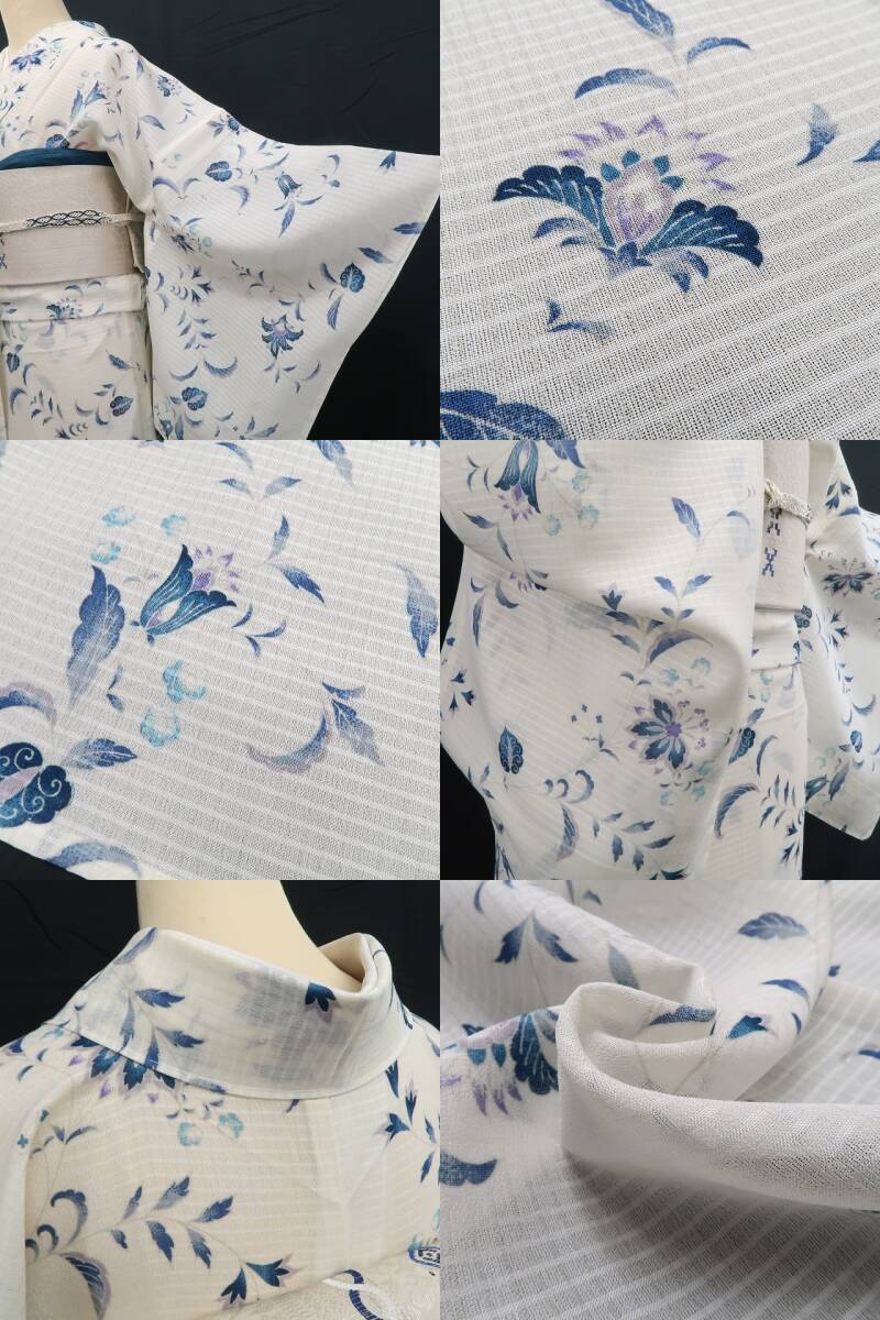 新品 紗 唐花 夏着物 正絹“花の小紋に笑顔を灯せば貴女に芽生える素敵な予感”仕付け糸付 ワイドサイズ 小紋 5642