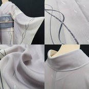 こちらのお着物は、ライトグレイッシュトーンの色地に夏モダンを意識した季節の風物を込めております。涼やかなるも上品に…夏着物の透明感とともに嫌みのないさりげないセンスがとても印象的に際立つお召し物です。