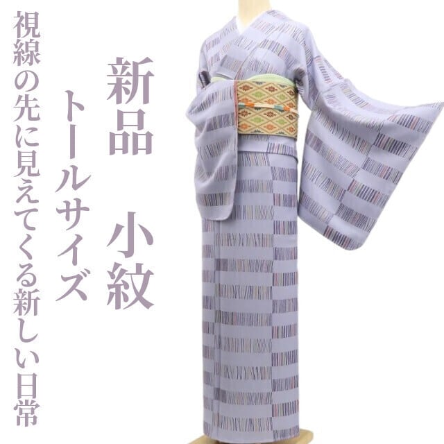 新品 着物 正絹“視線の先に見えてくる新しい日常”仕付け糸付 トールサイズ 小紋 5687