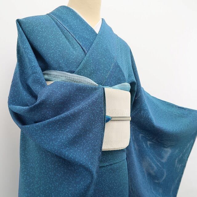 新品 縦絽 暈し 夏着物 正絹”藍の涼、やさしく肌を撫でて”仕付け糸付 小紋 5734