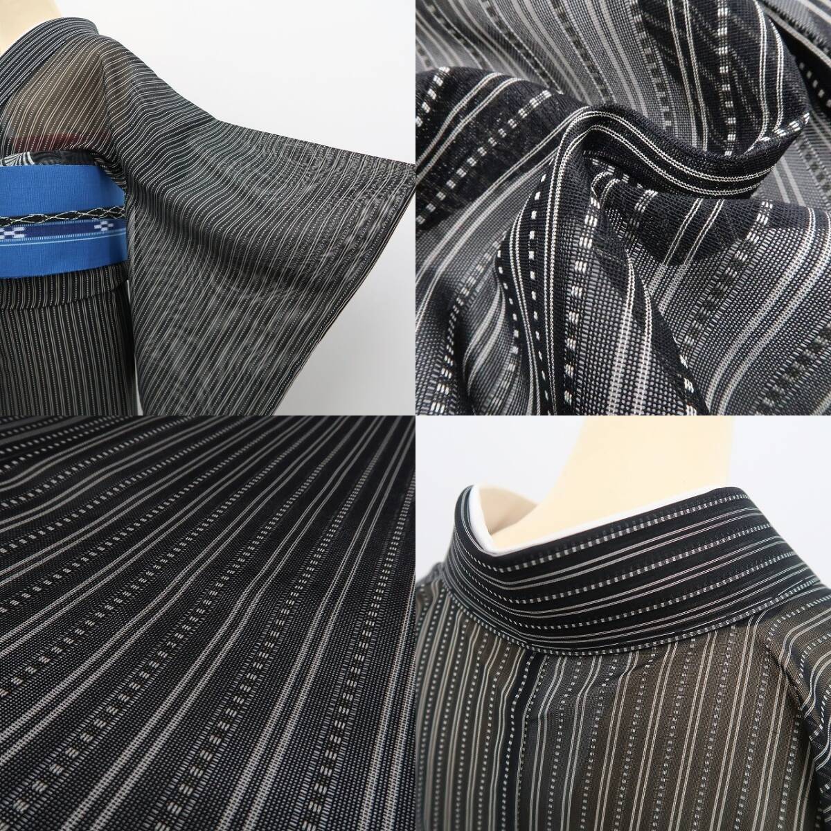 縞模様の着物には、どこか“粋”な雰囲気が漂います。凛とした佇まいの中に、軽やかさを感じさせる黒。どんな柄の帯もよく映えるため、コーディネートの幅も広く、あなたの“お洒落力”を引き出してくれる一枚です。