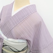 昨今、夏に和装をされる方が少なくなり希少なものとなりつつある絽のお着物は、二本の経糸を捩りながら緯糸を織り込んだもじり織で、盛夏のお召し物として涼しげでさらりとした生地質が魅力、着る方にもまた見る方にも清らかな風を感じるような涼しさを届けてくれます。