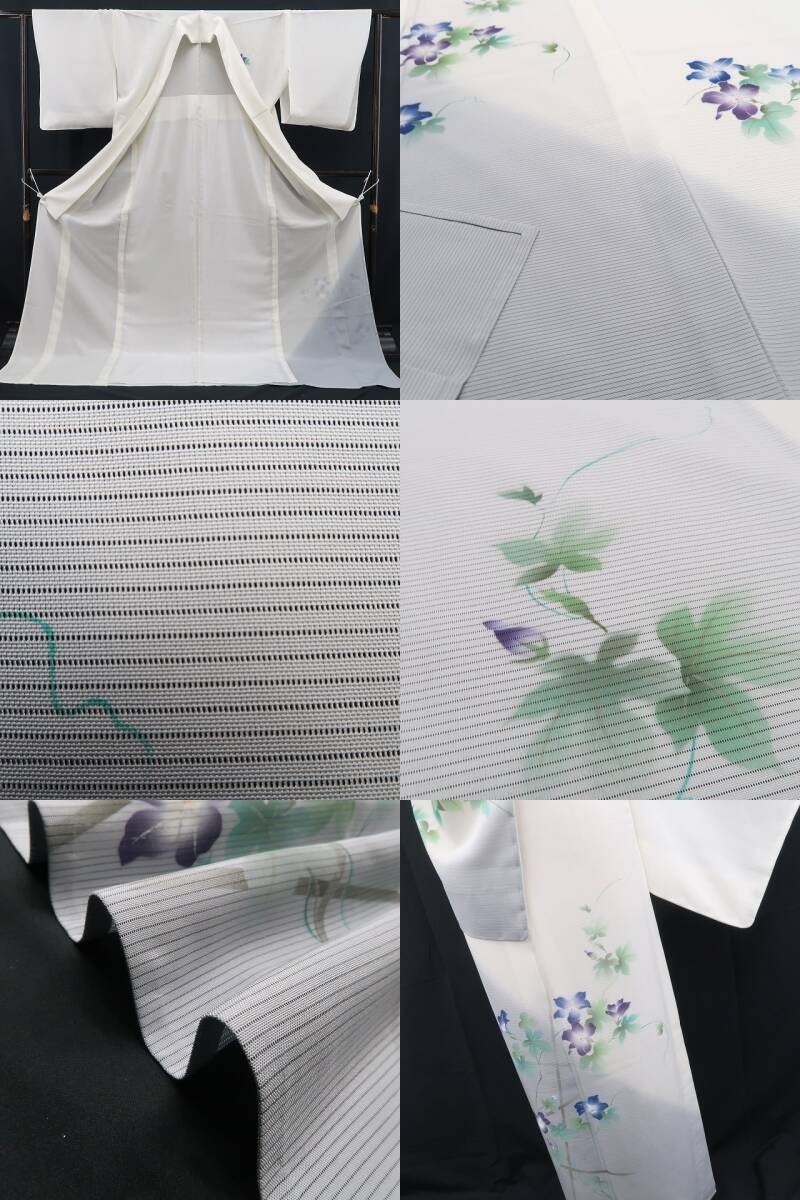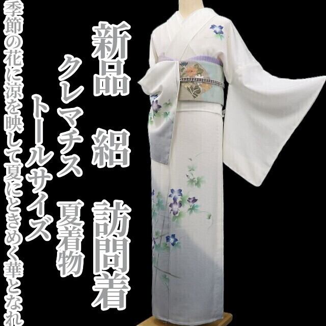 新品 絽 クレマチス 夏着物 正絹“季節の花に涼を映して夏にときめく華となれ”仕付け糸付 トールサイズ 訪問着 5760
