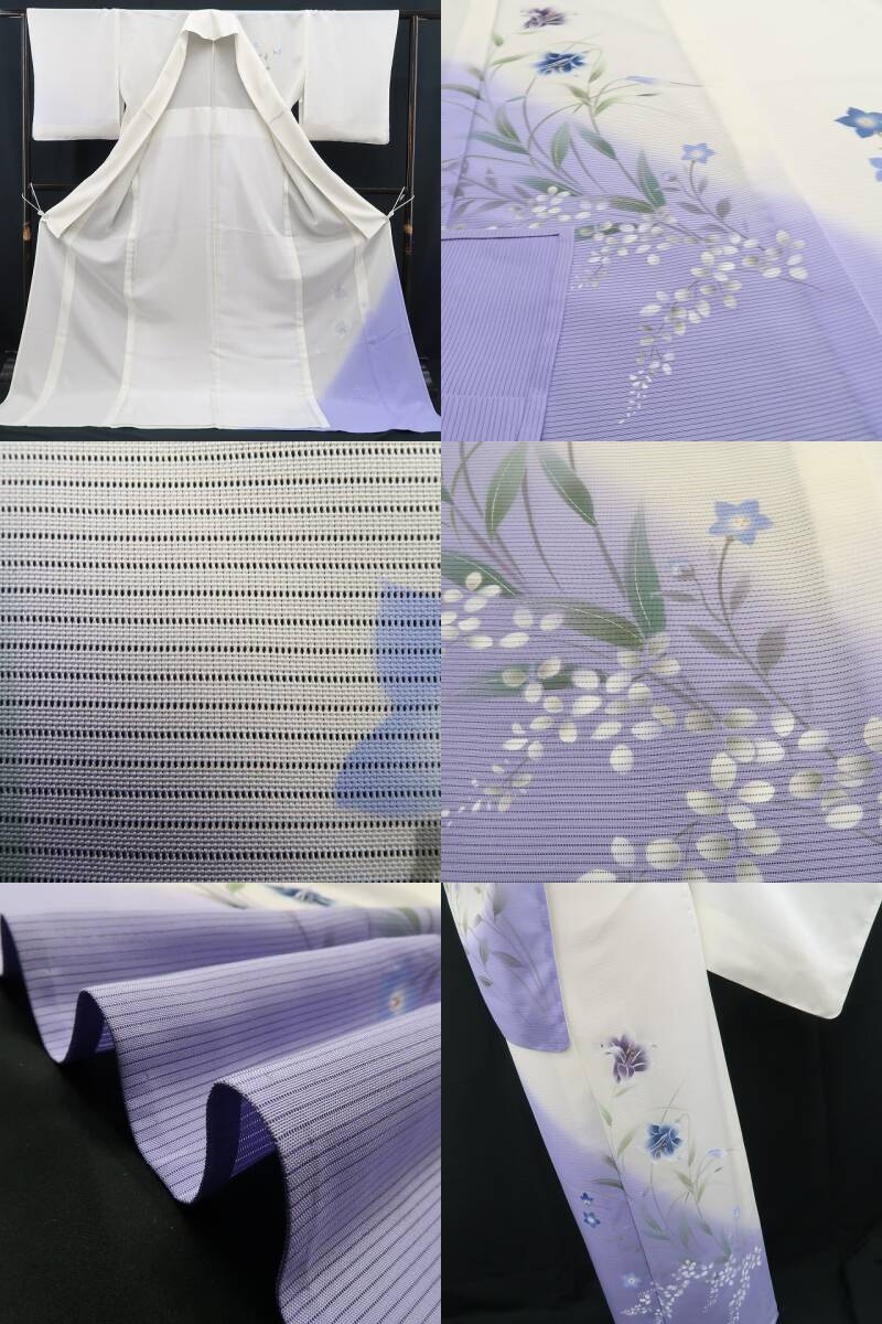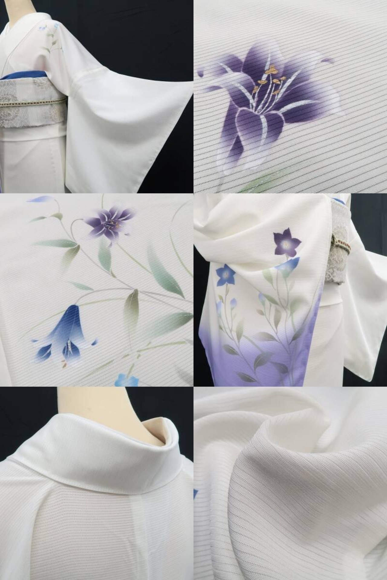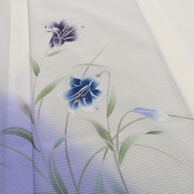 新品 絽 百合 桔梗 夏着物 正絹“拘り抜いて艶を挿す人それぞれの花景色”仕付け糸付 トールサイズ 訪問着 5761